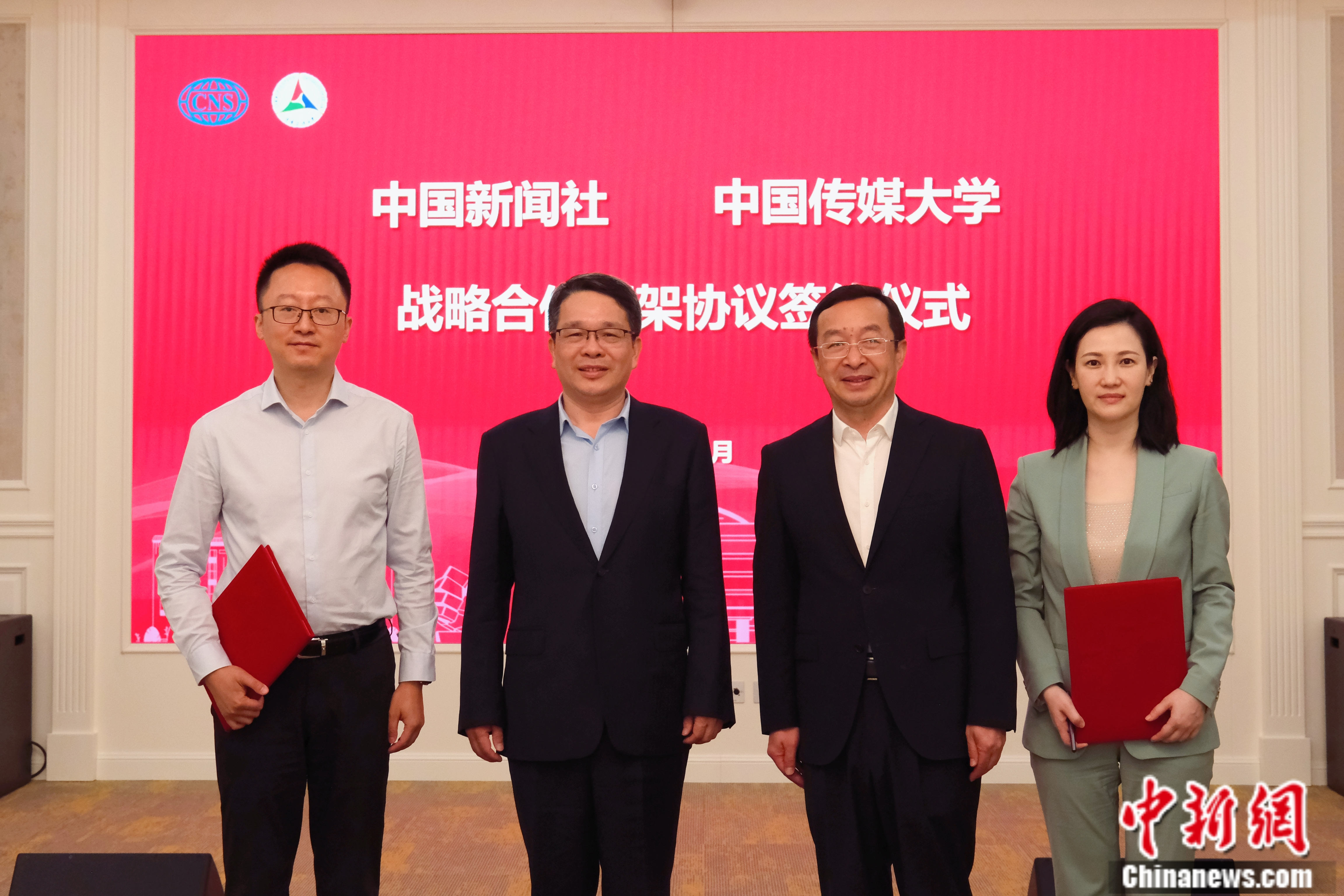 中国新闻社与中国传媒大学战略合作框架协议签约仪式现场。