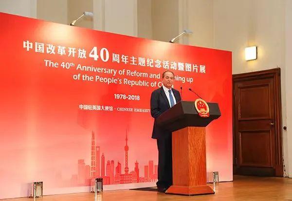 2018年12月11日,斯蒂芬·佩里在中国驻英国大使馆举办的“光辉的历程”图片展上致辞。图片来源:中国外交部网站