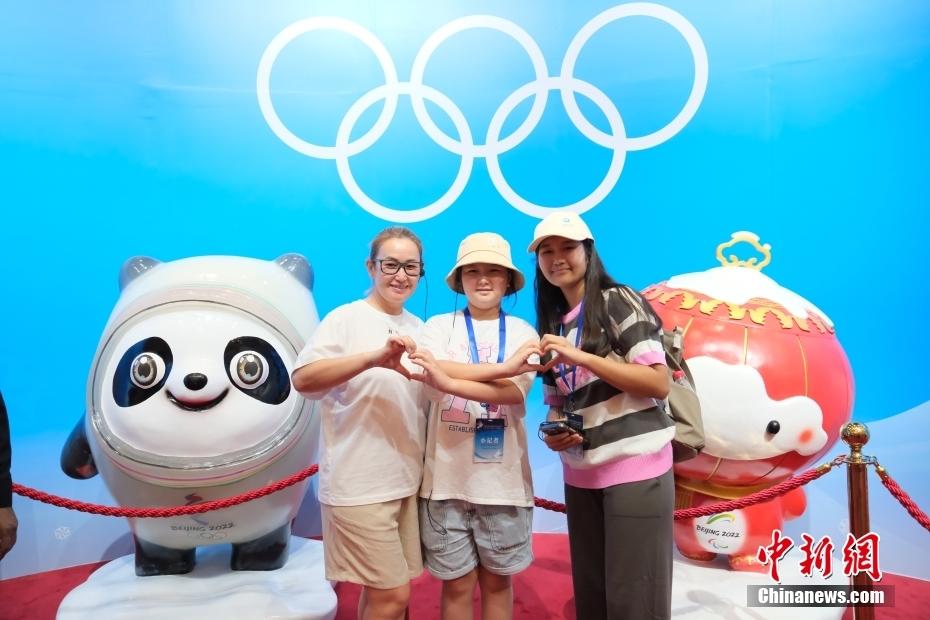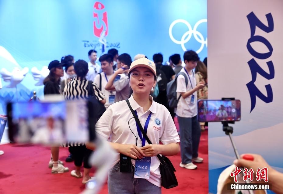 7月15日,“小记者”与2022北京冬奥会吉祥物合影。李太源 摄