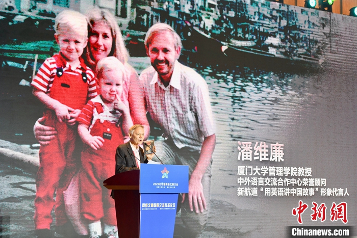 7月18日,2023年中国网络文明大会网络文明国际交流互鉴论坛在厦门举办。图为厦门大学美籍教授潘维廉作主题演讲。中新社记者 王东明 摄