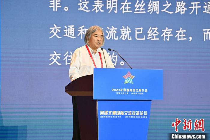 7月18日,2023年中国网络文明大会网络文明国际交流互鉴论坛在厦门举办。图为丝绸之路考古合作研究中心首席科学家王建新作主题演讲。中新社记者 王东明 摄