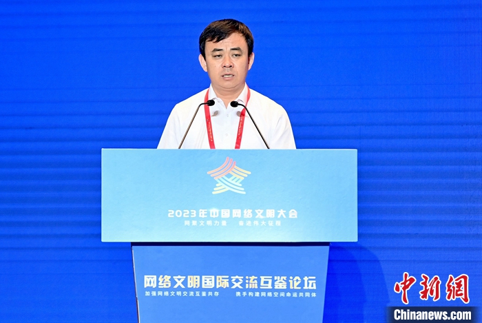 7月18日,2023年中国网络文明大会网络文明国际交流互鉴论坛在厦门举办。图为山东省日照市委副书记王新生作主题演讲。中新社记者 王东明 摄