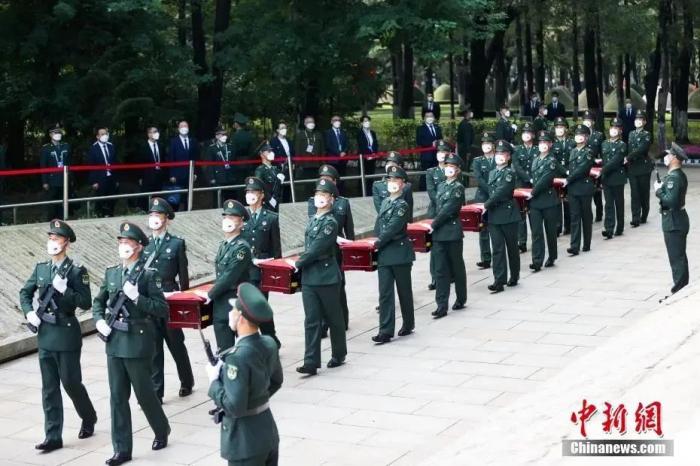 资料图:2022年9月17日,第九批在韩中国人民志愿军烈士遗骸安葬仪式在沈阳抗美援朝烈士陵园举行。中新社记者 于海洋 摄