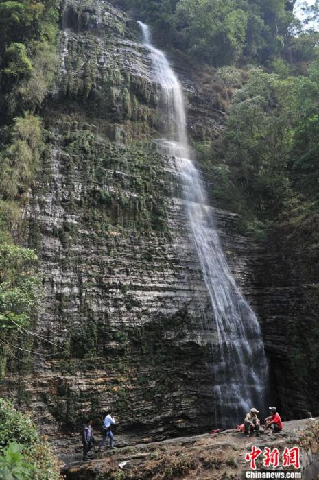 在云南省普洱市景东县境内的无量山内,一瀑布从山顶倾泻而下,汇成一个湖面。因金庸小说《天龙八部》的流传,并且现实场景与小说极其相似,当地人就把此处称作“剑湖”,当地相传瀑布石上一道道沟壑就是“剑痕”。任东 摄