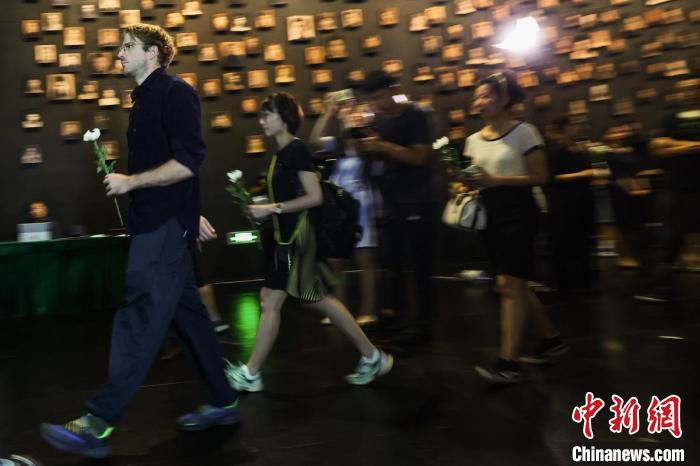 8月15日,中外大学生在侵华日军南京大屠杀遇难同胞纪念馆史料陈列厅参加熄灯仪式。 泱波 摄