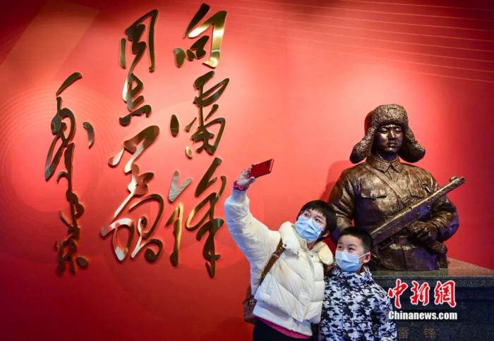 2月24日,辽宁抚顺,民众参观雷锋纪念馆展陈及纪念毛泽东等老一辈革命家为雷锋同志题词六十周年专题展览。中新社记者 于海洋 摄