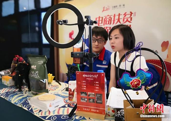 2020年5月,由甘肃省商务厅主办的“甘肃省第一届直播电商带货大赛”在兰州启动,来自该省的多名主播现场直播带货。丁思 摄