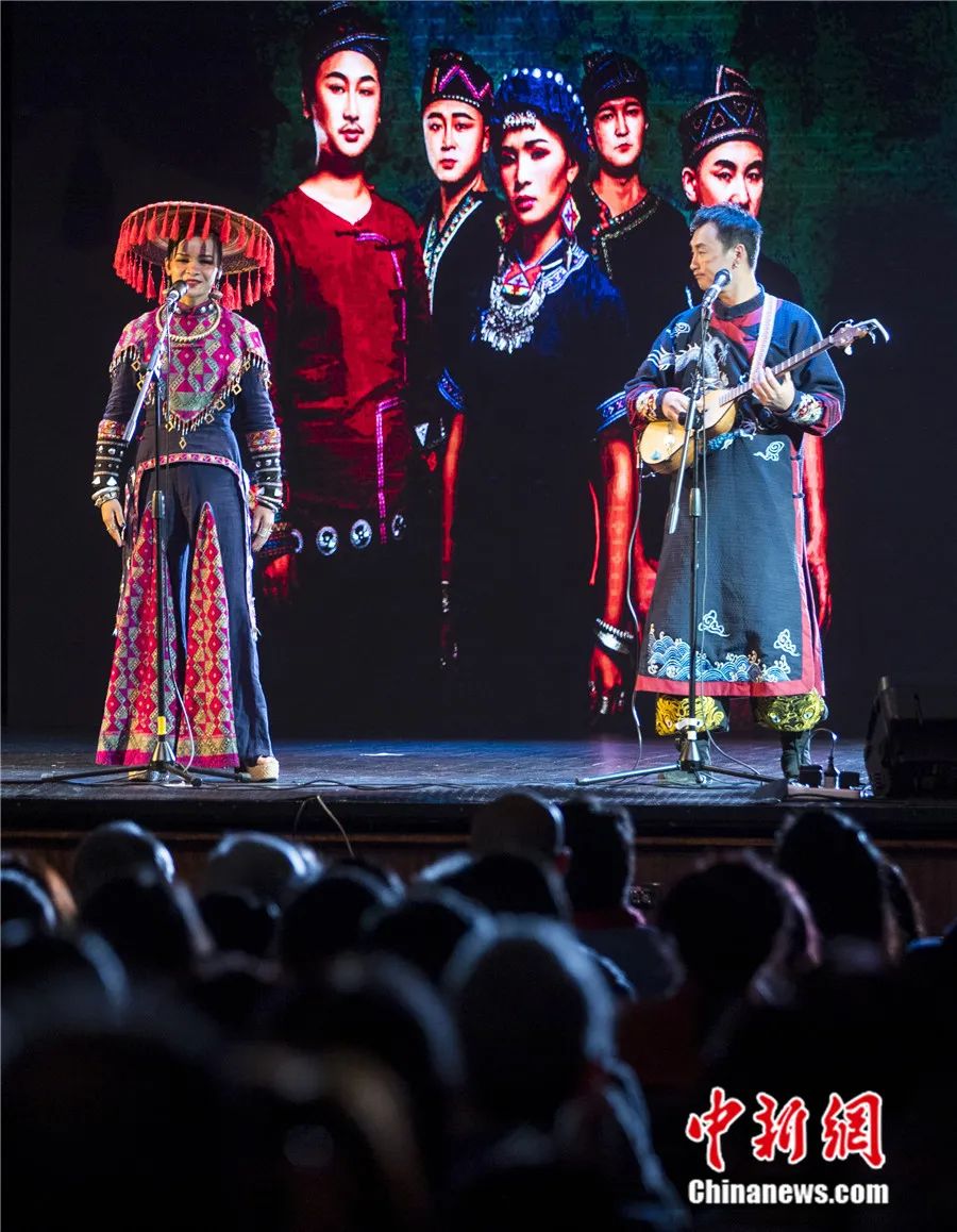 中国广西环江毛南族自治县“毛南音韵”艺术团的文化艺术交流演出在澳大利亚墨尔本白马市市政厅上演。张晓理 摄