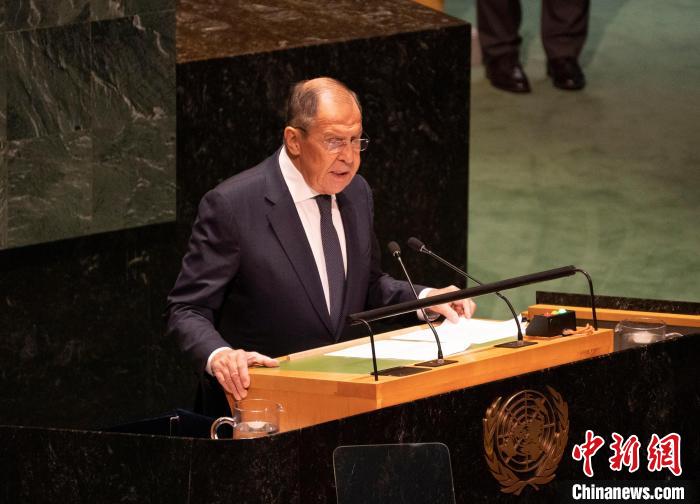 当地时间9月23日,俄罗斯外长拉夫罗夫在第78届联合国大会一般性辩论中发言。 中新社记者 刘关关 摄