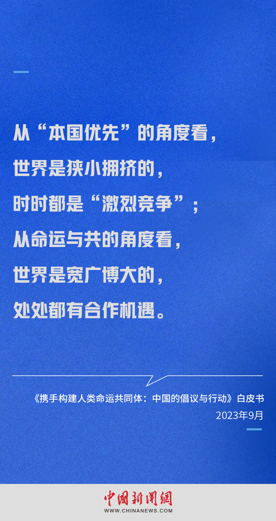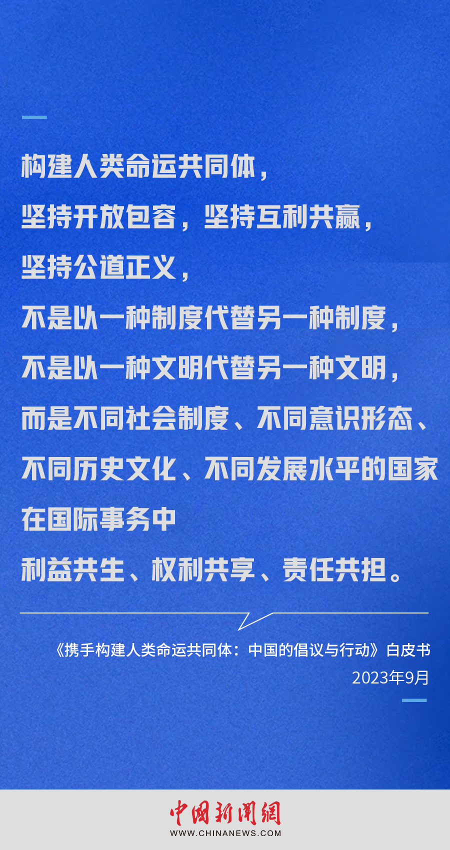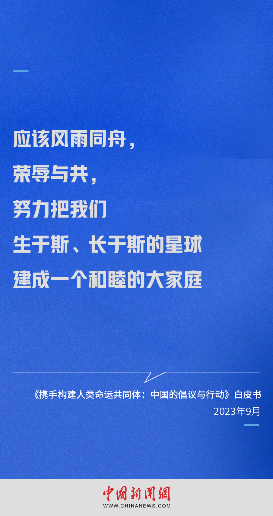 国务院新闻办公室9月26日发布《携手构建人类命运共同体:中国的倡议与行动》白皮书。白皮书指出,构建人类命运共同体,就是每个民族、每个国家、每个人的前途命运都紧紧联系在一起,应该风雨同舟,荣辱与共,努力把我们生于斯、长于斯的星球建成一个和睦的大家庭。