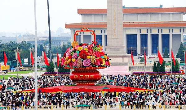 资料图:9月24日,“祝福祖国”主题花坛亮相天安门广场中心。(图/视觉中国)