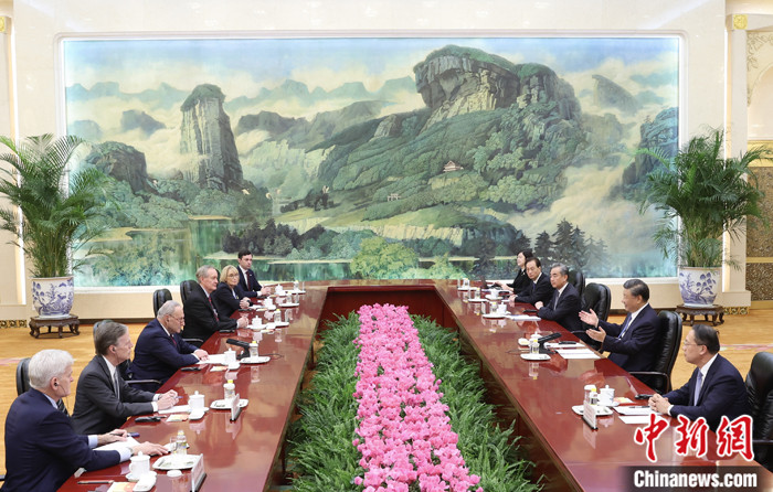 10月9日下午,中国国家主席习近平在北京人民大会堂会见美国国会参议院多数党领袖舒默率领的美国国会参议院两党代表团。 中新社记者 盛佳鹏 摄