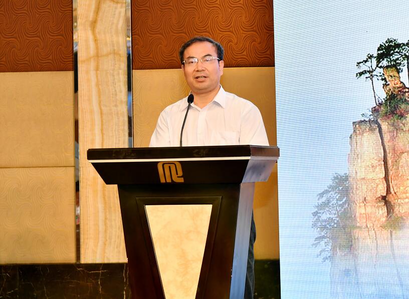 张家界市长刘革安向长三角地区介绍张家界旅游的招商前景(庹亮摄影)