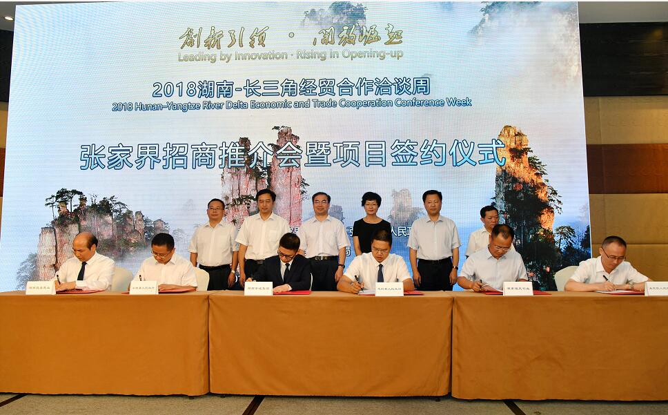 23日的张家界招商推介会暨项目签约仪式上,总额182.5亿元的13个招商签约项目签约, 主要项目有北京复华旅游文化发展有限公司投资40亿元的张家界武陵源复华国际度假世界、澳门君天集团投资38.5亿元的张家界天空之眼项目、海霍捷医院投资管理有限公司投资18亿元的张家界紫金湖国际医养中心项目等。一批优质旅游项目更是引得长三角投资商和上海台商的极大关注。
