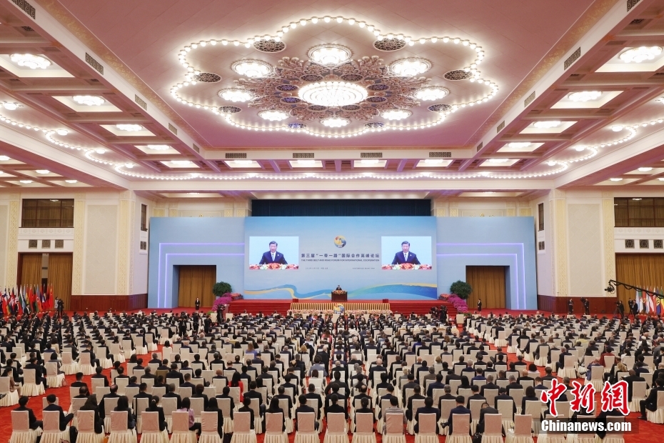 10月18日,中国国家主席习近平在北京人民大会堂出席第三届“一带一路”国际合作高峰论坛开幕式并发表主旨演讲。中新社记者 蒋启明 摄