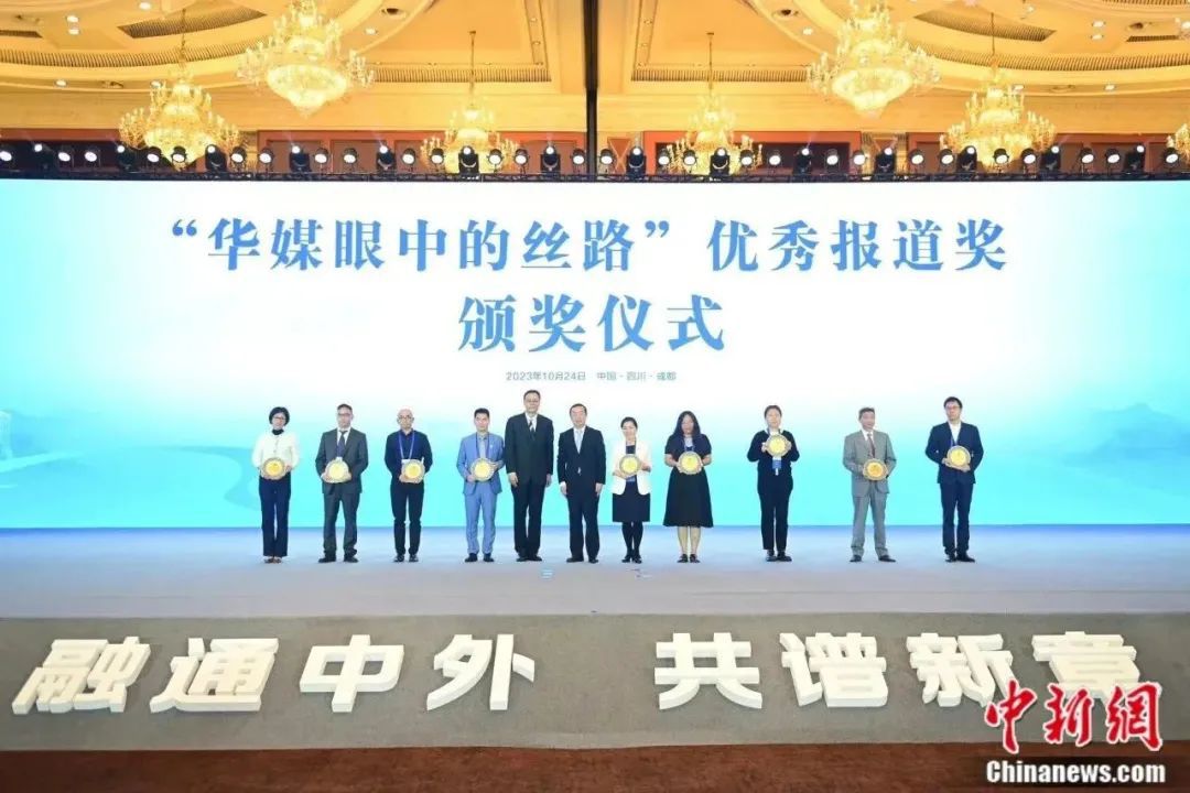 今年是共建“一带一路”倡议提出十周年,华文媒体充分报道了“一带一路”倡议,涌现了一大批新闻佳作。中国新闻社与世界华文媒体合作联盟组织开展“华媒眼中的丝路”报道及作品征集活动,评选出20件优秀作品。“华媒眼中的丝路”优秀报道奖颁奖在闭幕式上举行。