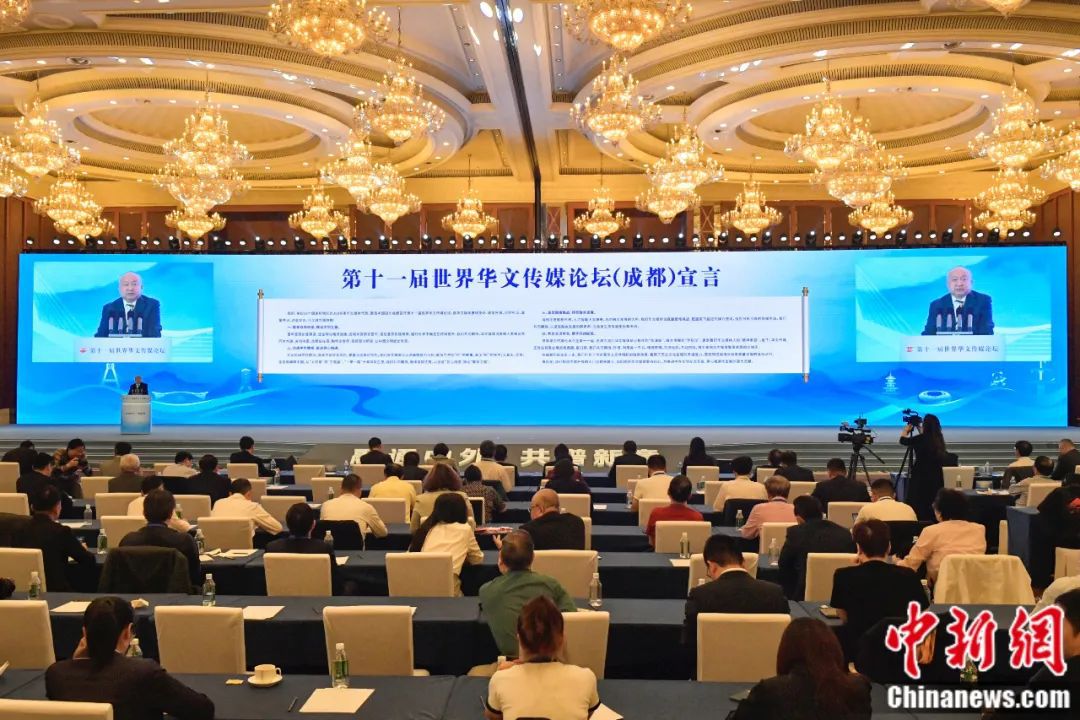 中国新闻社总编辑张明新宣读了《第十一届世界华文传媒论坛(成都)宣言》,呼吁华文媒体秉持初心,为推动中外文明交流互鉴、民心相通作出新的更大贡献。