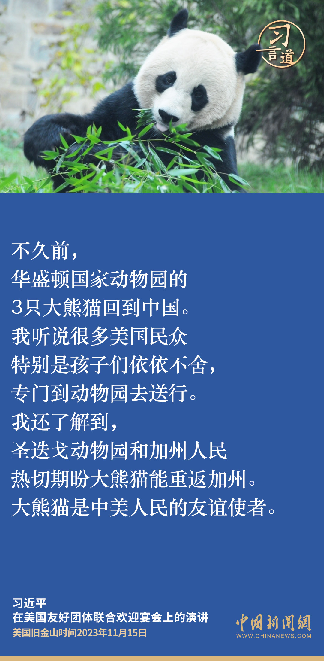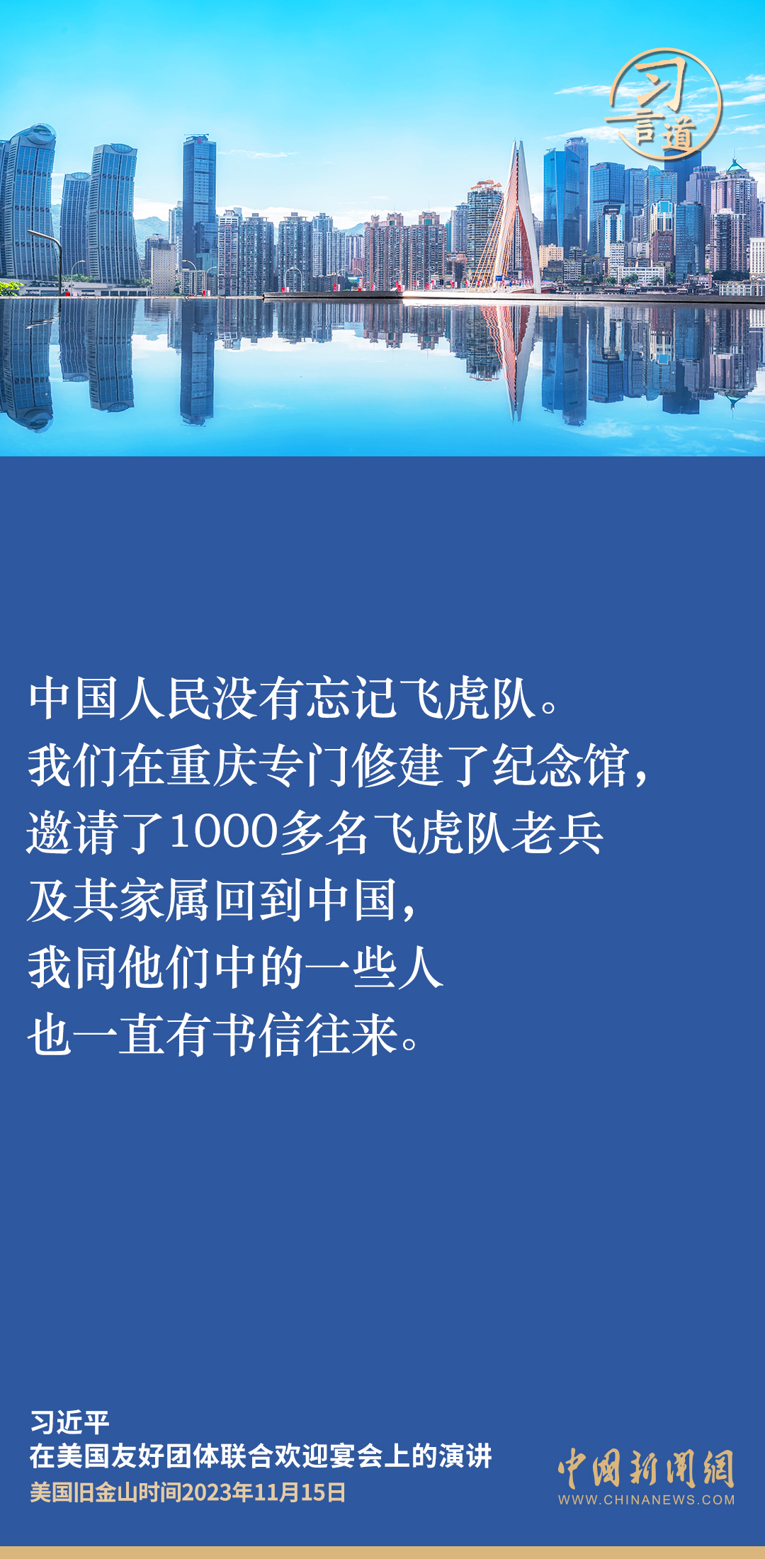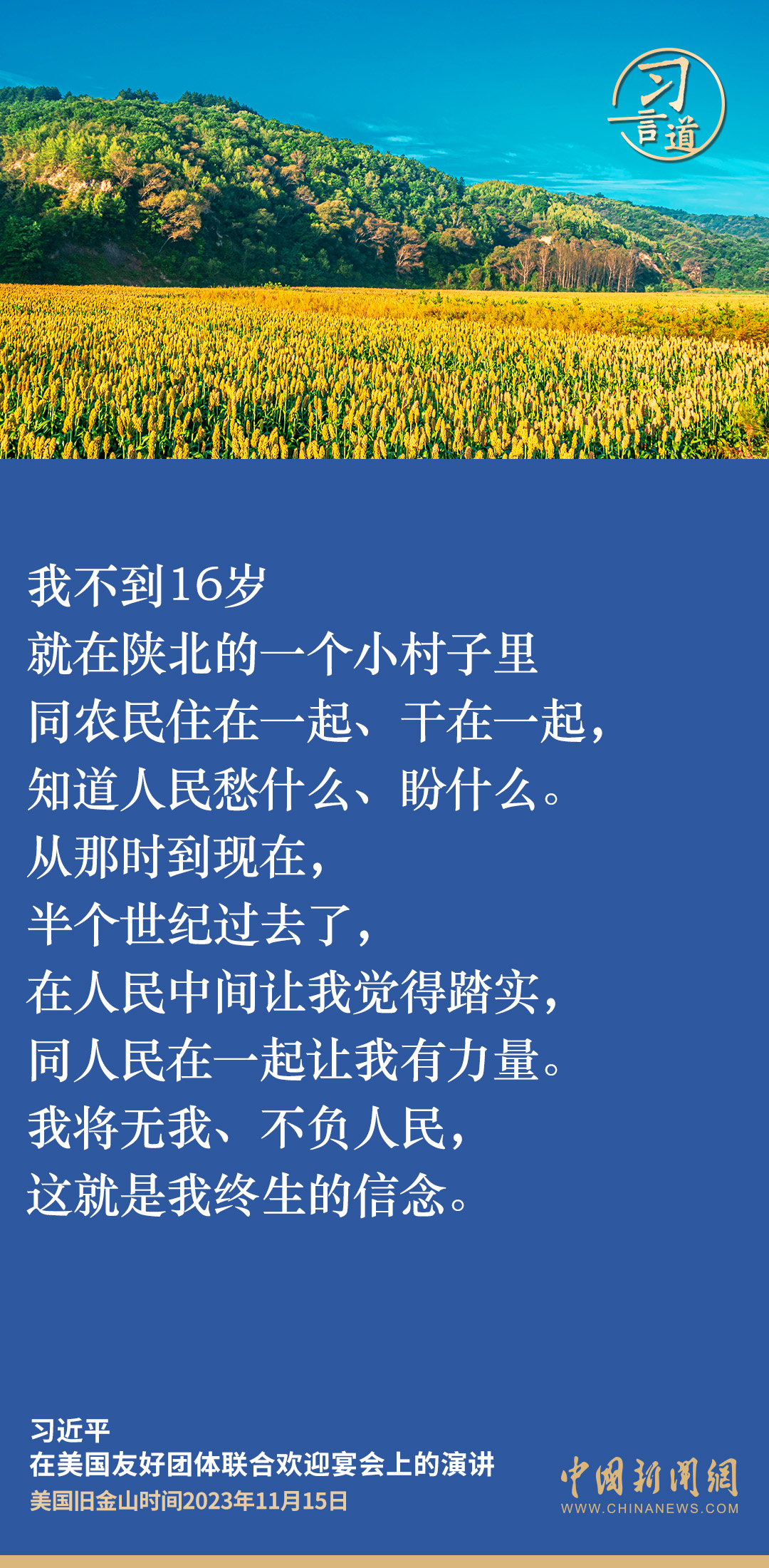 当地时间11月15日,中国国家主席习近平在美国旧金山出席美国友好团体联合欢迎宴会并发表演讲。演讲中,习近平频频以自身经历、感受、思考,与新朋旧友叙友情、话友好,畅谈中美相处之道。他谈到——