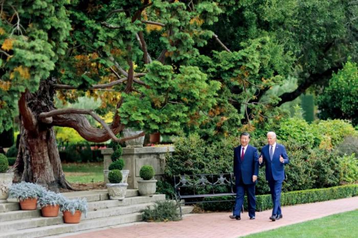 11月15日,国家主席习近平在美国旧金山斐洛里庄园同美国总统拜登举行中美元首会晤。会谈后,拜登邀请习近平一道在斐洛里庄园里散步。摄影/本刊记者 盛佳鹏
