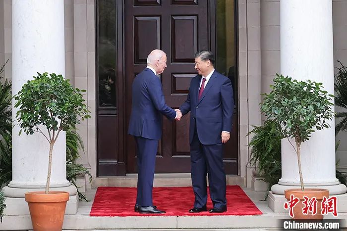 当地时间11月15日,中国国家主席习近平在美国旧金山斐洛里庄园同美国总统拜登举行中美元首会晤。中新社记者 盛佳鹏 摄