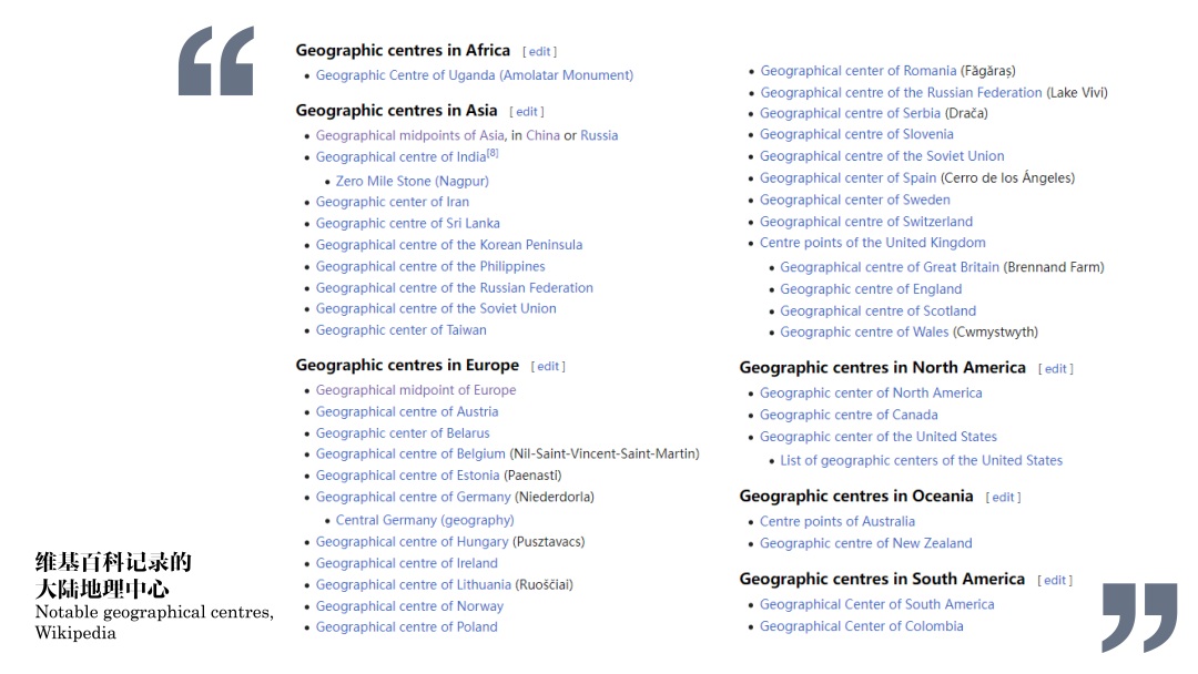 图5,维基百科记录的世界各大洲大陆地理中心列表