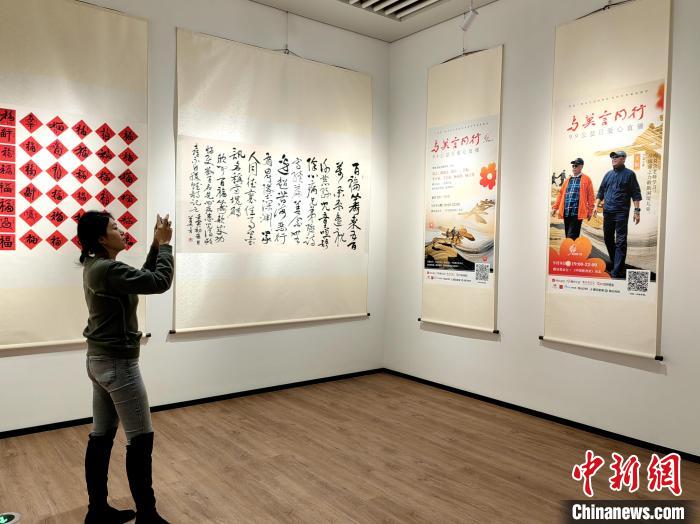 记者在参观展馆时注意到,书法厅内悬挂3幅莫言书写的长卷《麦浪滚滚》《太白若来》《我是不孝之子》,吸引众多参观者驻足欣赏。近年来,他与王振在全国各地探访民间艺术、人文古迹。在他们共同打理的公众号“两块砖墨讯”上,二人发表百余篇诗词歌赋等书法作品,赞美祖国大好山河。