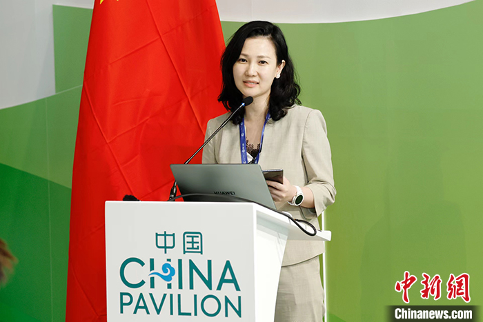 图为中国新闻社副总编辑、中国新闻网总裁俞岚在COP28中国角开幕式暨“生态文明与美丽中国实践”边会上发言。中新社记者 韩海丹 摄