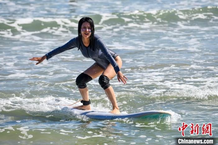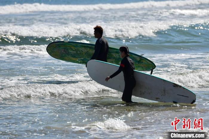 “我去年第一次体验冲浪之后,就爱上了这项运动。”游客沈双说,日月湾阳光充足,海水温度适宜,每年10月份到次年3月份都是冲浪的绝佳时间。