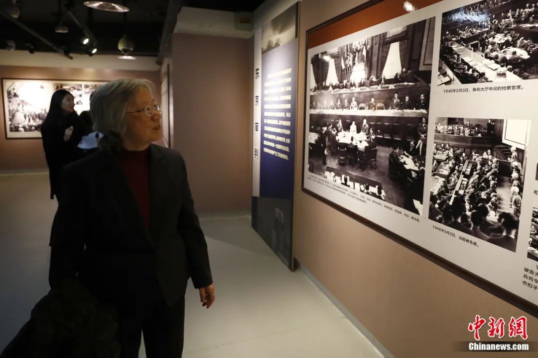 2019年12月13日,《正义的审判——纪念东京审判宣判71周年专题展》在中国人民抗日战争纪念馆开幕,270余幅珍贵历史照片再现“东京审判”。图为远东国际军事法庭中国法官梅汝璈之女梅小侃参观专题展。富田 摄