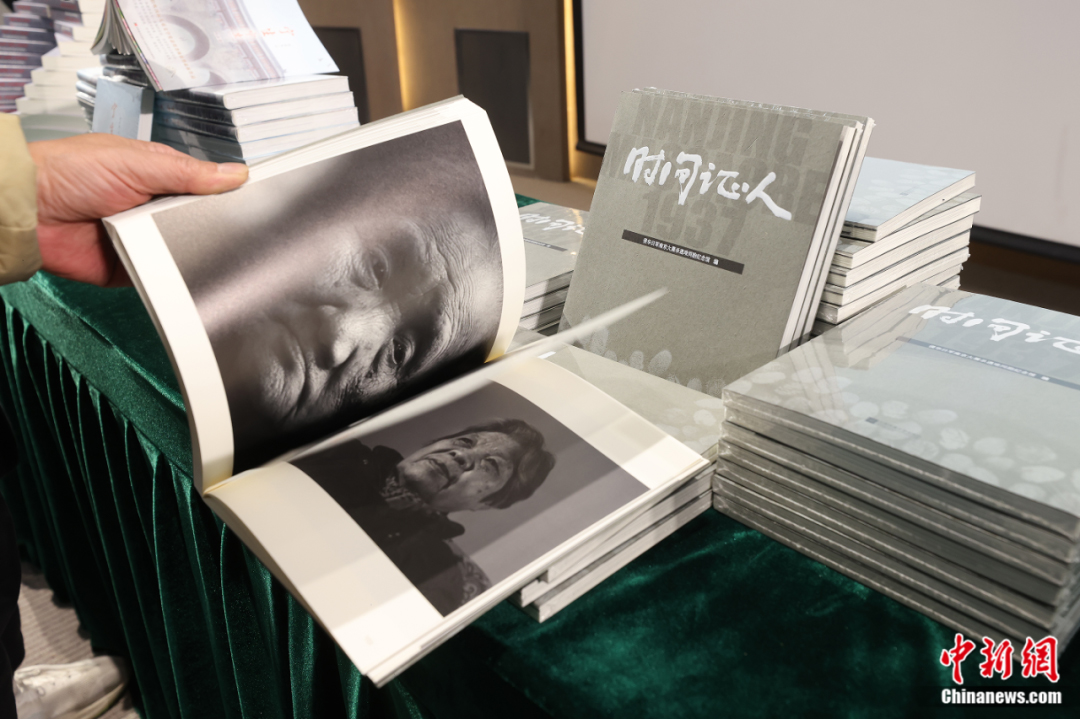 2023年12月6日,侵华日军南京大屠杀遇难同胞纪念馆联合各界在南京举行“2023年度南京大屠杀史研究新书发布会”,十余本新书集中首发。图为与会人士翻阅《时间证人》一书。泱波 摄