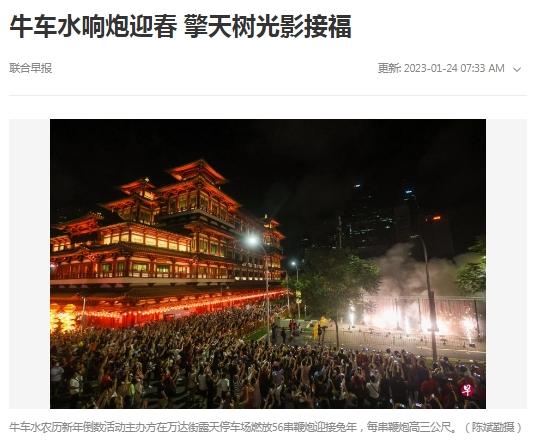 新加坡民众庆祝春节。图片来源:新加坡《联合早报》报道截图