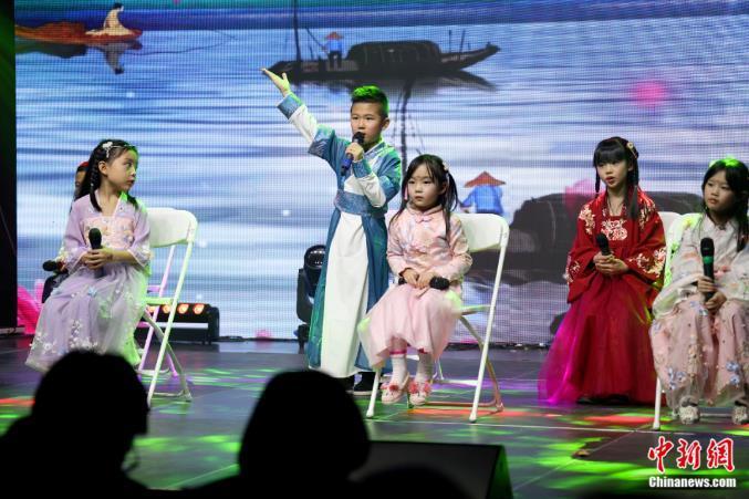 2023年1月20日晚,加拿大多伦多,当地华人儿童在“星动多伦多”春节联欢晚会上吟唱唐诗宋词。余瑞冬 摄