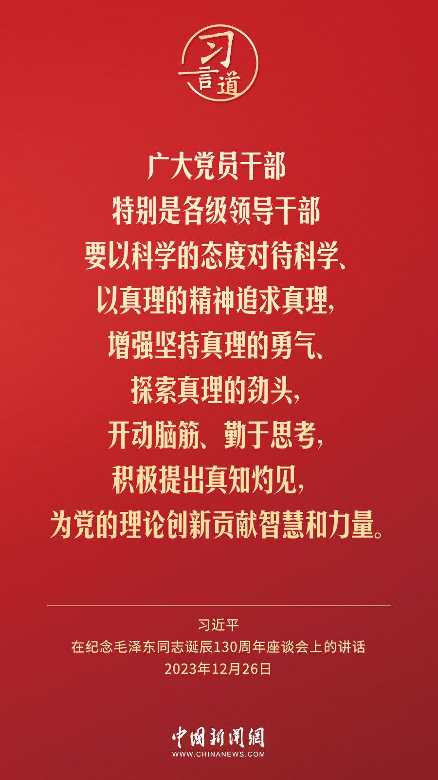 中共中央26日上午在人民大会堂举行座谈会,纪念毛泽东同志诞辰130周年。中共中央总书记、国家主席、中央军委主席习近平发表重要讲话。习近平指出——