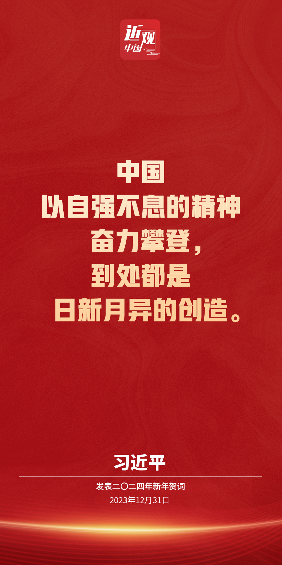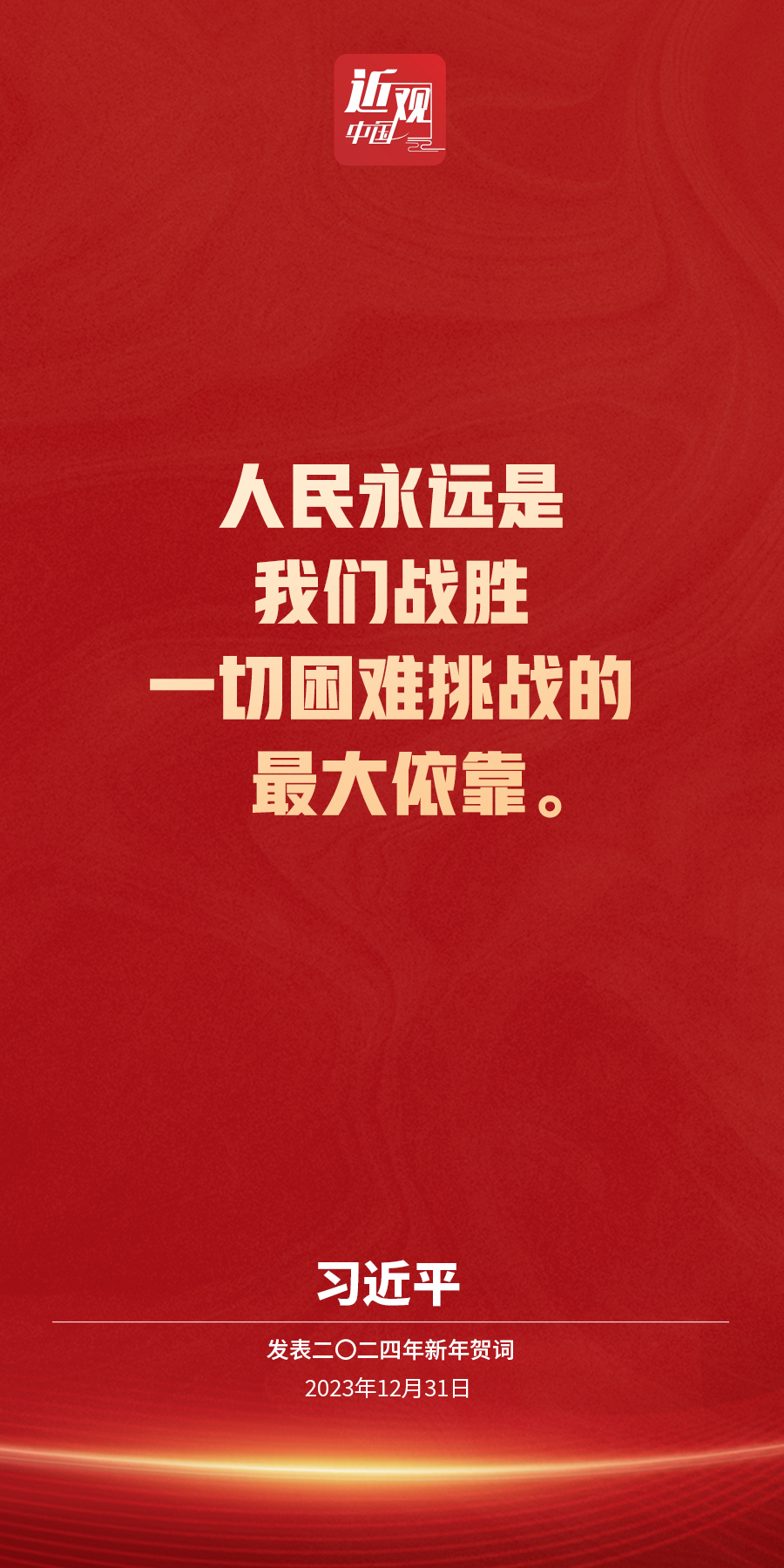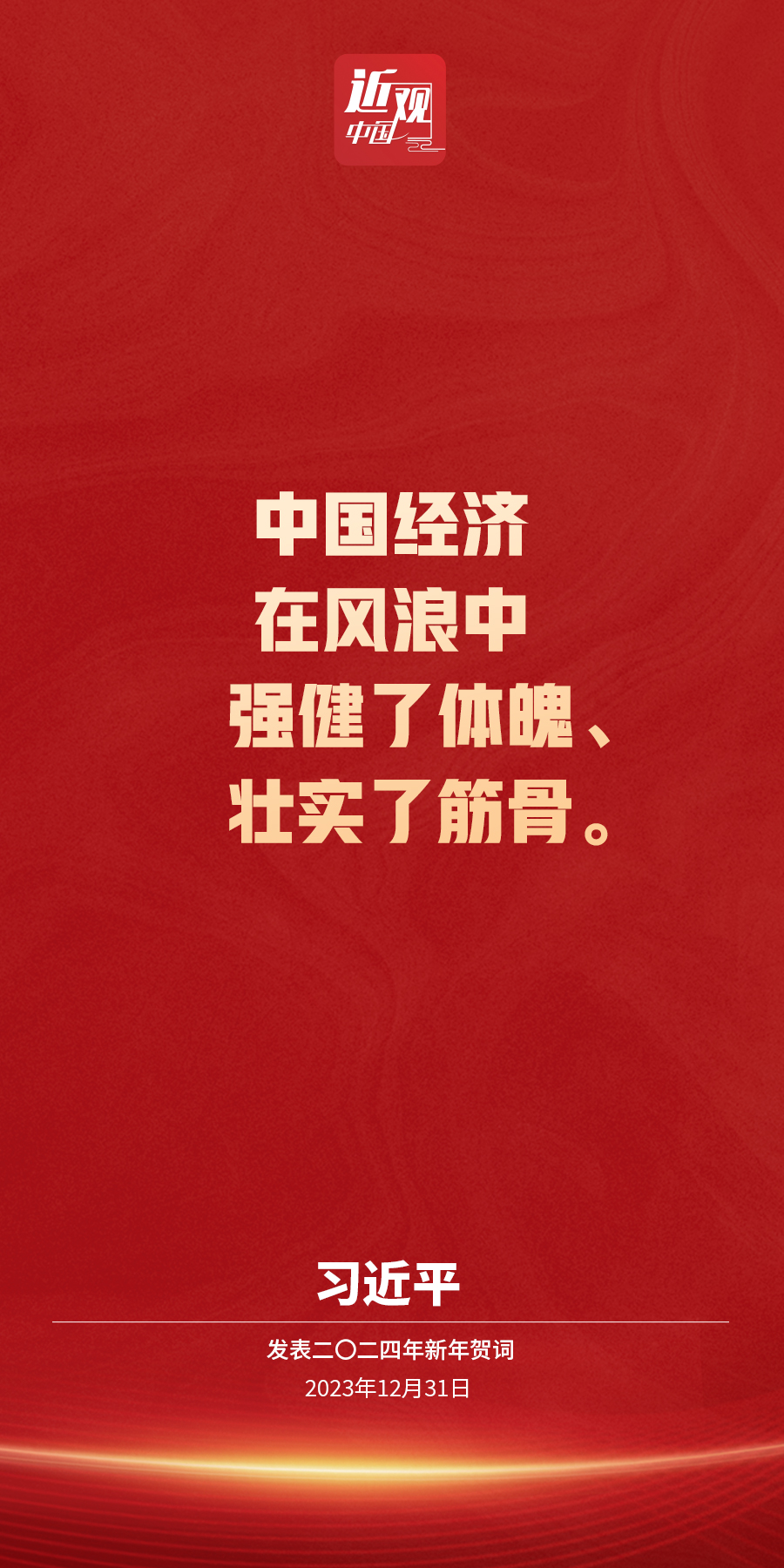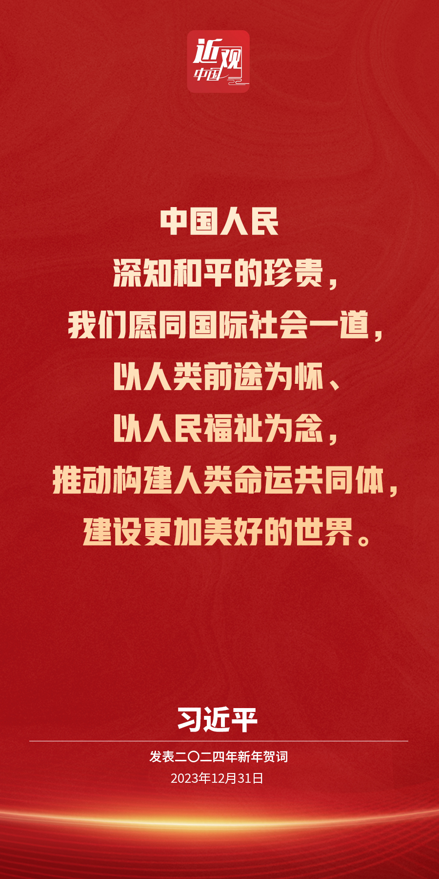 新年前夕,国家主席习近平通过中央广播电视总台和互联网,发表了二〇二四年新年贺词。他说——
