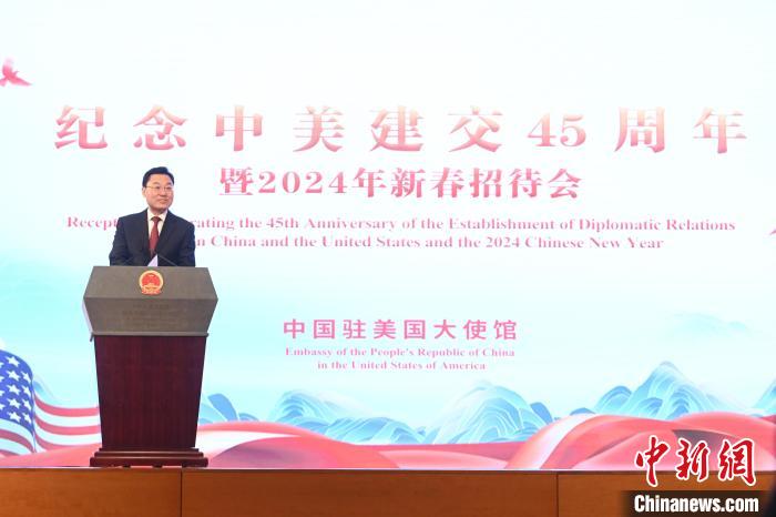 当地时间1月16日,中国驻美国使馆举办纪念中美建交45周年暨新春招待会。图为中国驻美大使谢锋致辞。中新社记者 陈孟统 摄