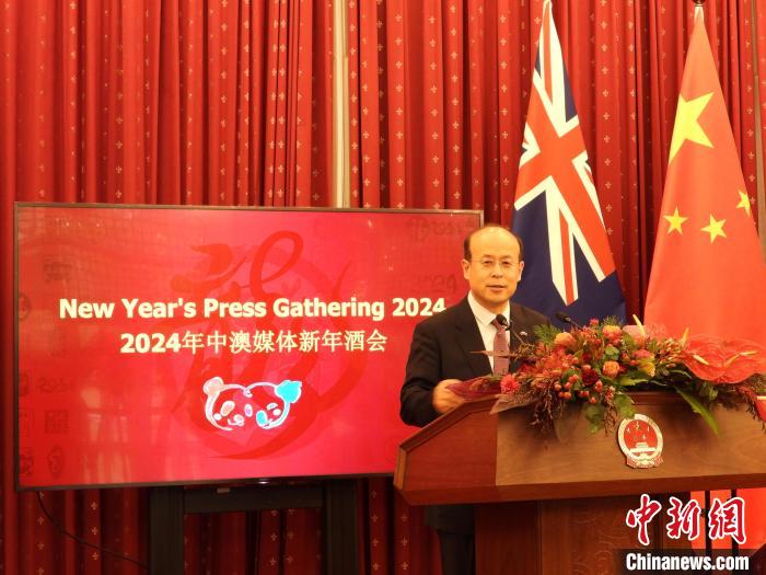 当地时间1月17日,中国驻澳大利亚大使肖千在使馆举行的中澳媒体新年酒会上致辞表示,2023年是中澳关系“交流、对话与改善之年”。中新社记者 顾时宏 摄