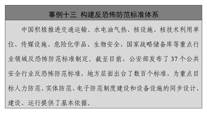 ——不断增强反恐防恐能力。随着法律制度体系不断完善,中国不断加强交通运输、寄递物流、危险物品等相关行业的安全管理制度建设,积极推进重点行业领域和地方反恐怖防范标准建设,相继制定修订了各类反恐怖主义预案,并加强演练,强化社会治安防控能力。鼓励、支持反恐怖主义科学研究和技术创新,开发和推广使用新的技术设备,并用于实训和实战,有效应对人工智能、加密通信、虚拟货币等新技术、新业态带来的挑战,不断提升科技反恐怖主义能力。坚持反恐怖主义专门工作与群众路线相结合,在全社会广泛开展反恐怖主义宣传教育活动,推动宣传进校园、进单位、进社区等,面向社会公众推出《公民反恐防范手册》等宣传品,出台涉恐线索举报奖励办法,广泛发动群众提供线索,提升了人民群众的安全防范意识和应对暴力恐怖突发状况的能力。