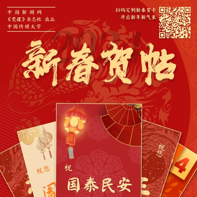 在甲辰龙年即将到来之际,中国新闻网、《党建》杂志社、中国传媒大学为您送上可定制的新年贺帖。