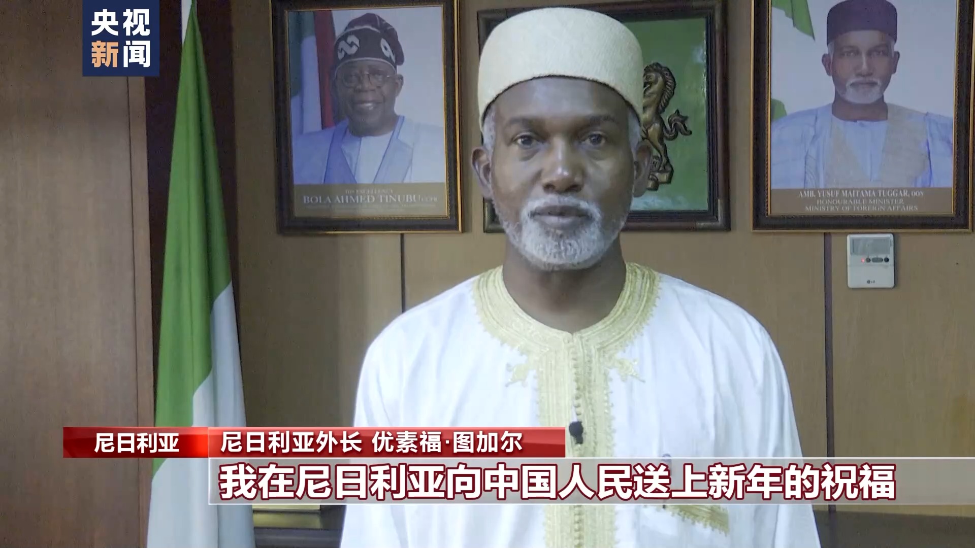 尼日利亚外长 优素福·图加尔:我在尼日利亚向中国人民送上新年的祝福。祝愿中国人民度过一个欢乐祥和的春节,祝愿在新的一年,中国在各个领域取得长足的进步与发展。祝愿中国与尼日利亚的友谊更加牢固,尼中人民携手迈向更加美好的明天。龙年大吉!