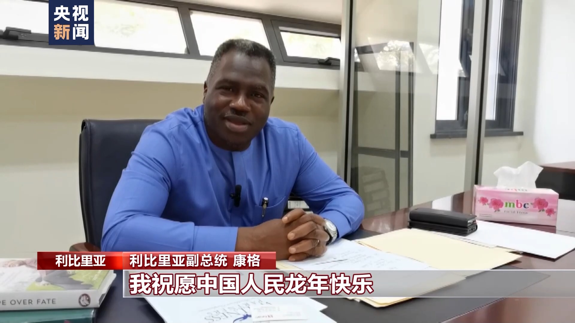 利比里亚副总统 康格:我祝愿中国人民龙年快乐!利比里亚人民对中国人民提供的一如既往的支持表示由衷感谢。我们将继续与中国人民携手合作,为两国创造福祉。
