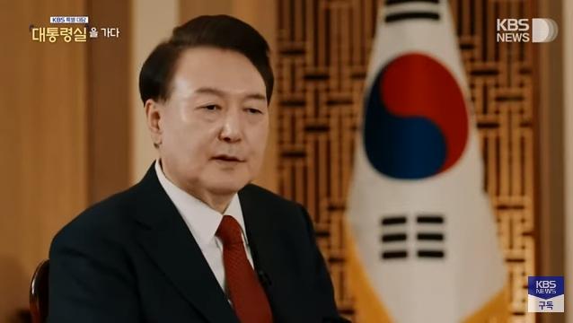 2月7日晚,韩国KBS电视台第一频道播出独家访谈节目《特别访谈:走进总统府》,韩国总统尹锡悦回应其夫人金建希收受名牌皮包的争议。图片来源:KBS视频截图