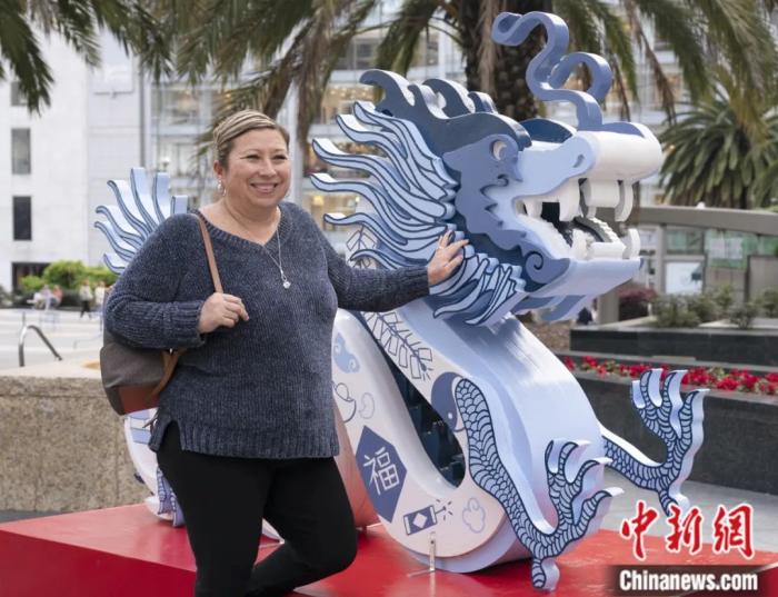 2024年1月28日,一尊龙雕像出现在美国旧金山联合广场。从当日起,设计风格各异的龙雕像在旧金山不同地点展出,迎接即将到来的中国农历龙年。刘关关 摄