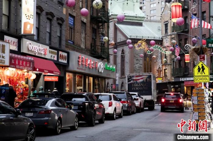 2024年1月30日,随着春节的临近,美国纽约曼哈顿唐人街张灯结彩年味儿渐浓。廖攀 摄