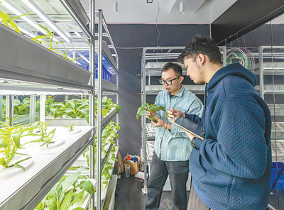 深圳前海深港青年梦工场北区,创业青年对水培植物进行数据收集。近年来,众多创业团队在这里持续探索科技创新,研发成果不断涌现。