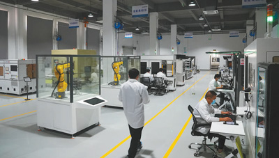 前海深港现代服务业合作区,一家科技公司的研发车间里,工作人员在调试设备。近年来,前海加快打造现代服务业高质量发展高地,推进现代服务业和先进制造业深度融合。