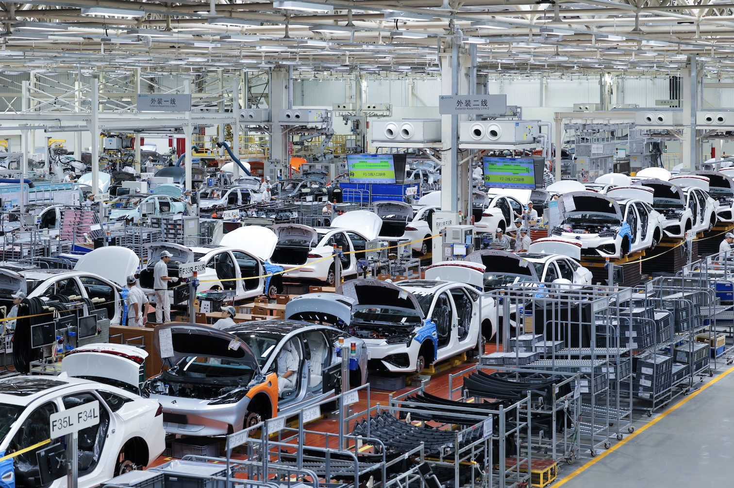 全国每4辆新能源汽车就有1辆是“广东造” 图为广汽埃安新能源汽车生产线