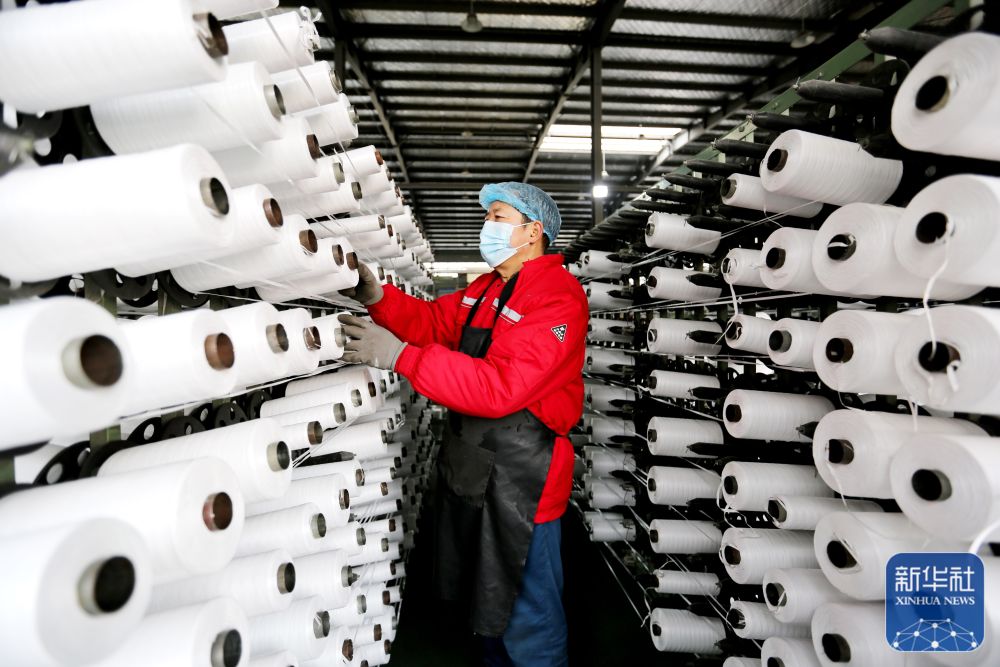 2月18日,工人在江苏省连云港市连云区一家纺织企业忙碌。