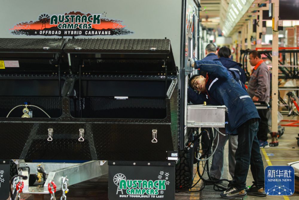 2月18日,山东省荣成市房车产业基地一家房车制造企业的生产车间内,产业工人在组装新型房车。