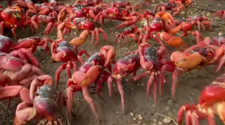 场面壮观!数百万只澳大利亚红蟹迁徙 成群结队横穿马路