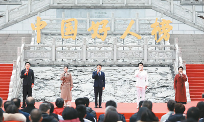 活动现场,“中国好人”推荐人宣读致敬词。